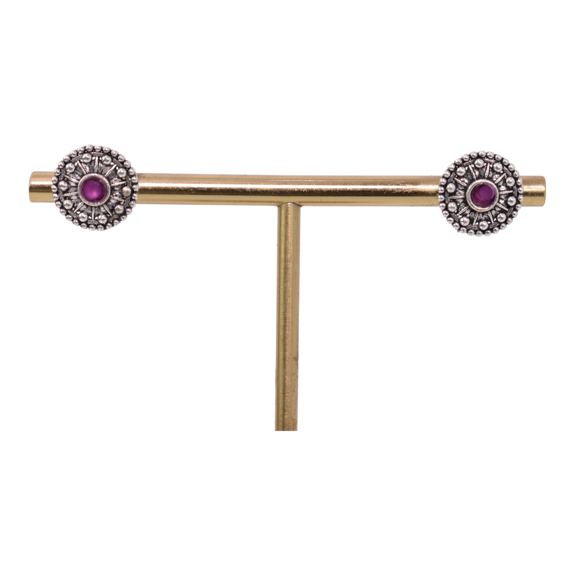 925 pure silver round dana intricate ruby colour cutstone silver studs