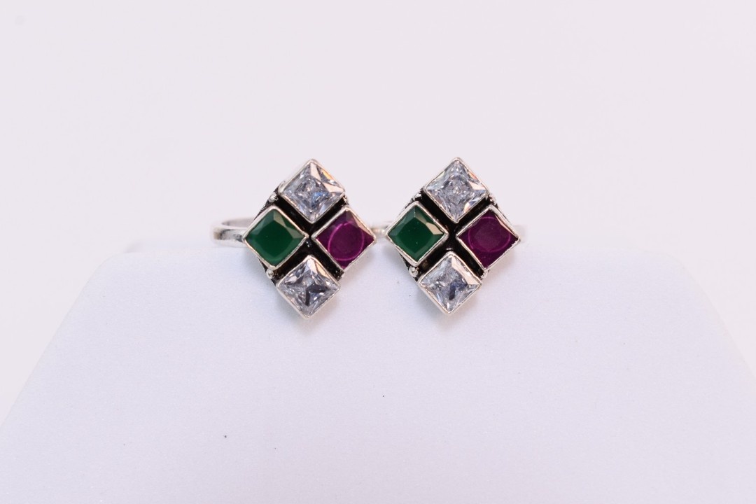 925 pure silver Scintillating square shape green white and ruby colour cutstone cocktail silver toe rings